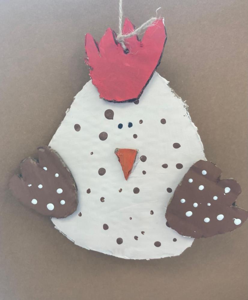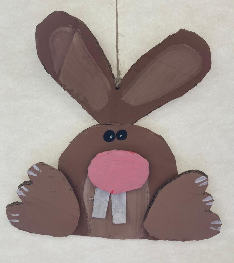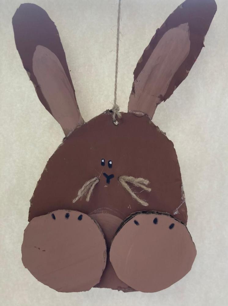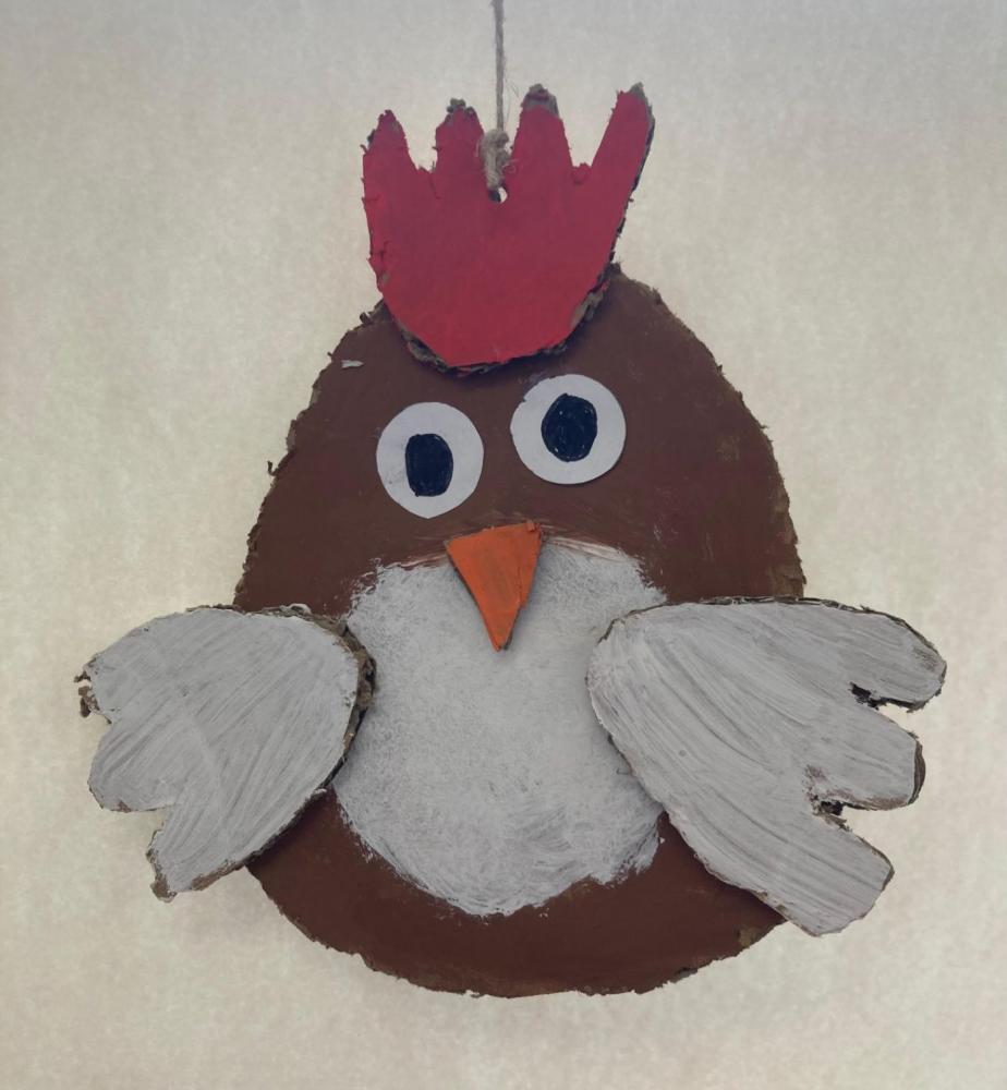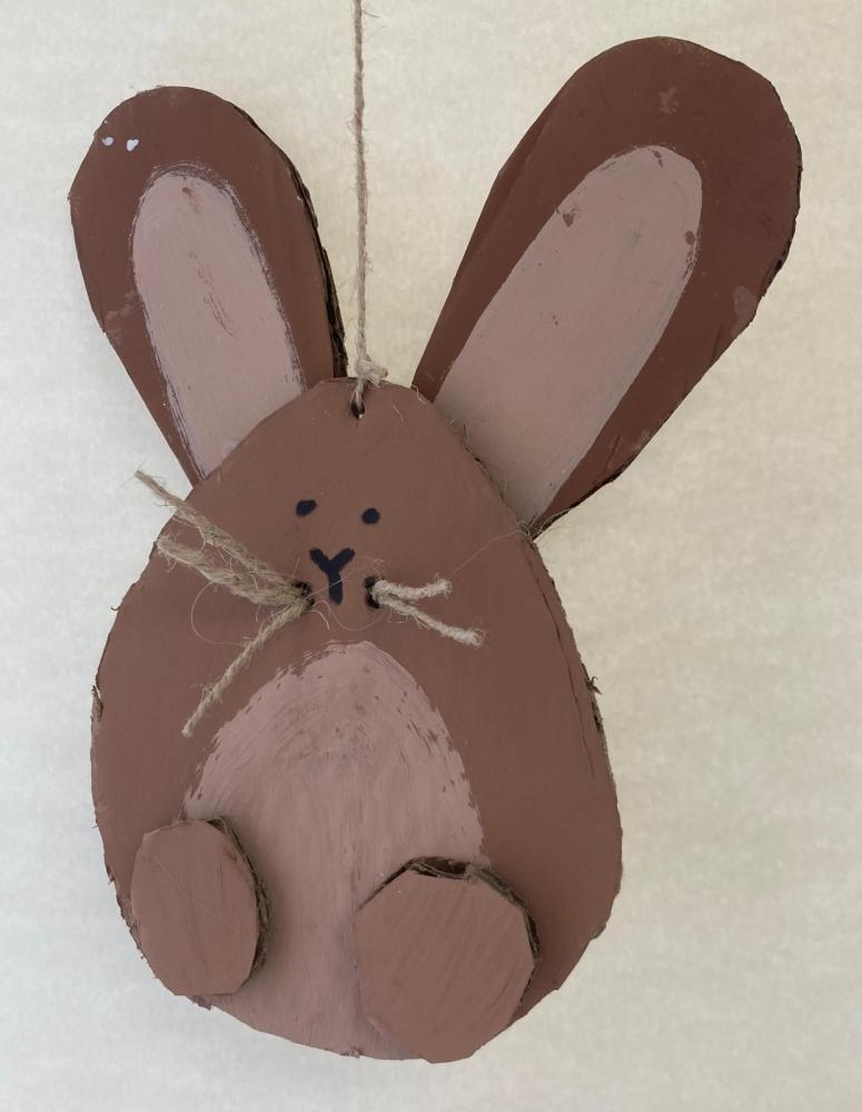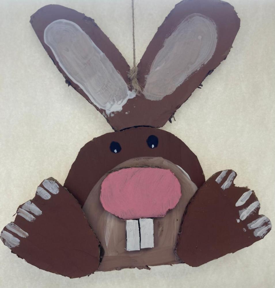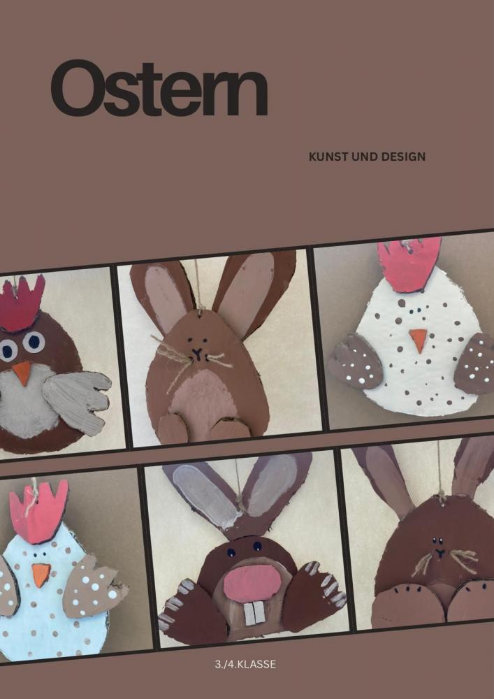 Für unsere Osterdekoration haben die Kinder Hasen und Hennen aus Karton ausgeschnitten. Danach wurden die Figuren zuerst mit Acrylfarben bemalt.