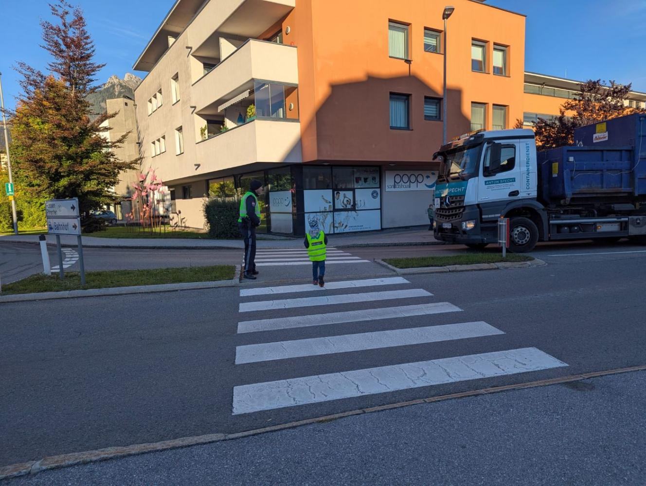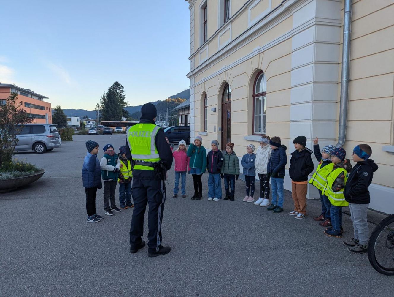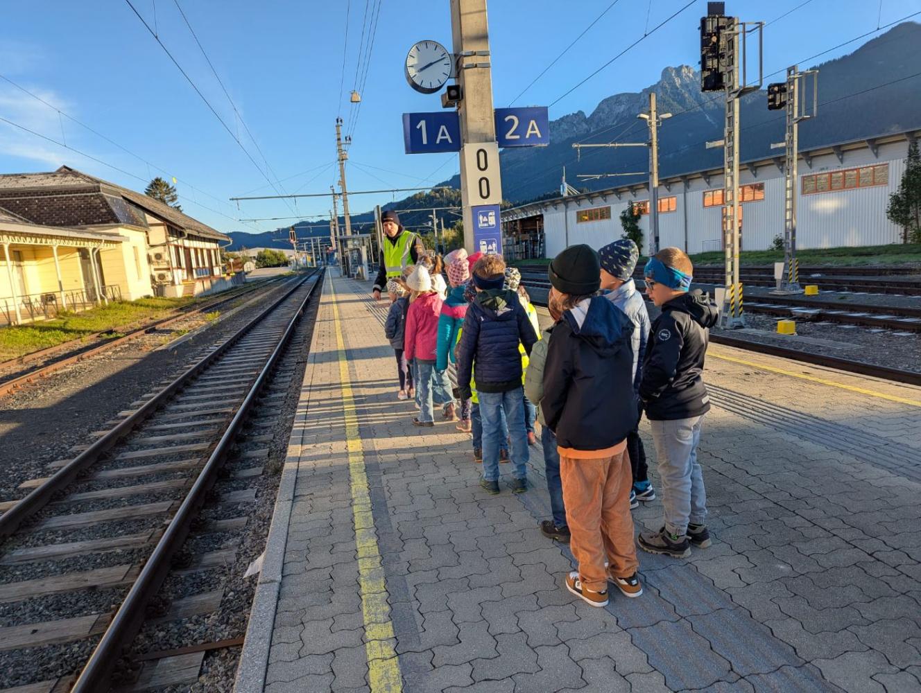 Verkehrssicherheit von Anna Adler 08. Oktober 2025 Gemeinsam mit einem Polizisten lernten die Kinder sicher Bahngleise und Straßen zu überqueren. Abschließend durften die Kinder sogar noch einen Blick ins Gefängnis in Reutte werfen.