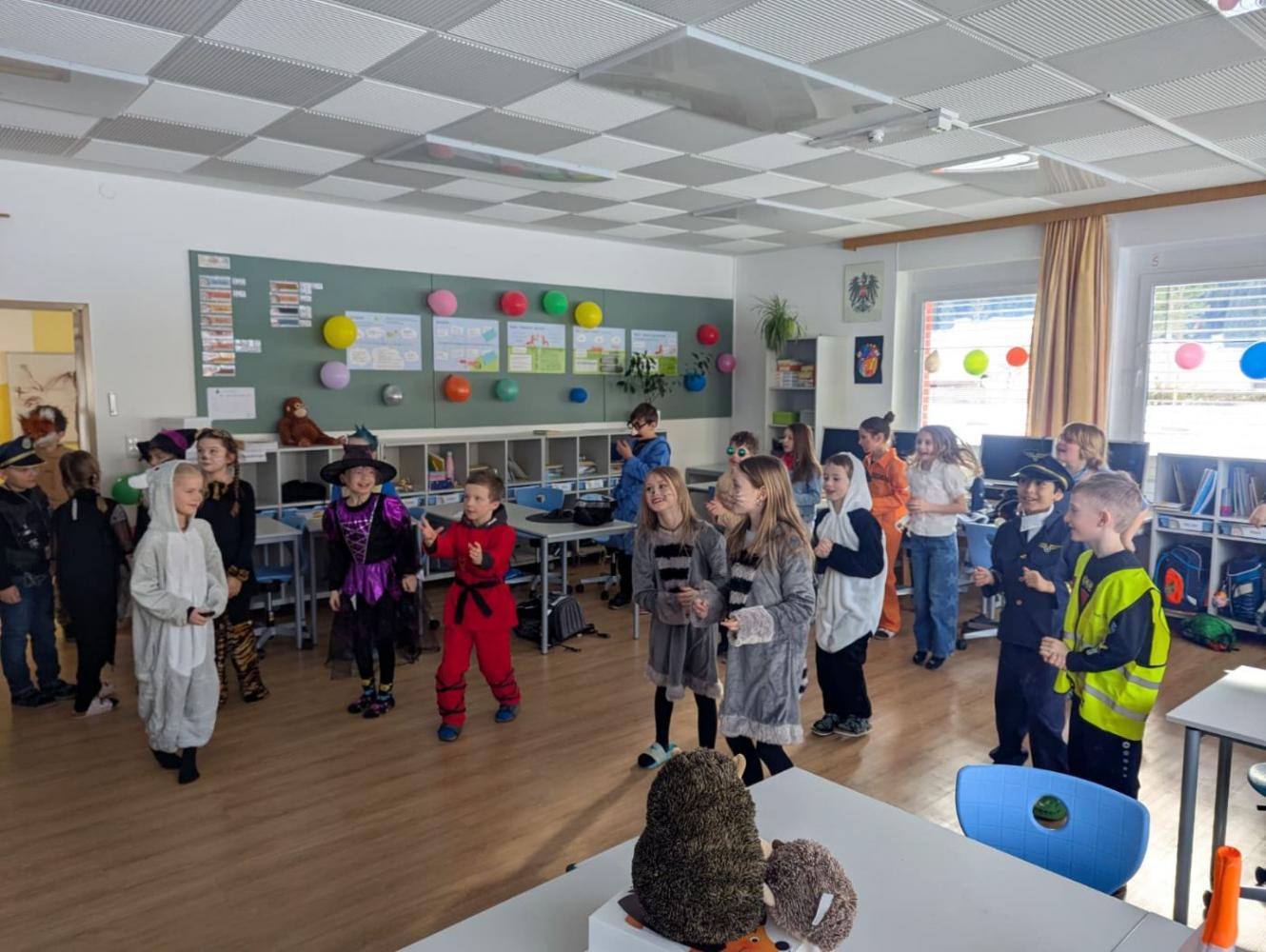 Zur Musik verwandelte sich das Klassenzimmer in eine Tanzfläche. Später durften sich die Kinder ganz nach Lust und Laune im Turnsaal austoben: turnen, laufen, spielen oder einfach ausgelassen sein. So wurde aus dem Vormittag ein buntes Bewegungsfest voller Musik, Spaß und fröhlichem Chaos. Auch ein gemeinsames Völkerballturnier durfte dabei natürlich nicht fehlen.